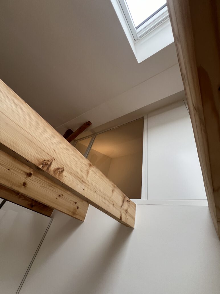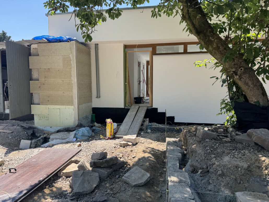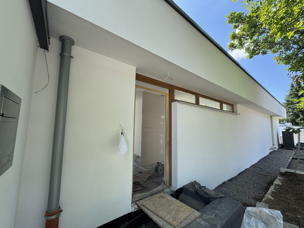 - Im Zuge dieser umfassenden Kernsanierung wurde das Fertighaus vollständig entkernt und anschließend strukturell neu aufgebaut. Dazu gehörten unter anderem die Vergrößerung der Fensteröffnungen sowie die fachgerechte Herstellung einer statisch relevanten Holzkonstruktion.