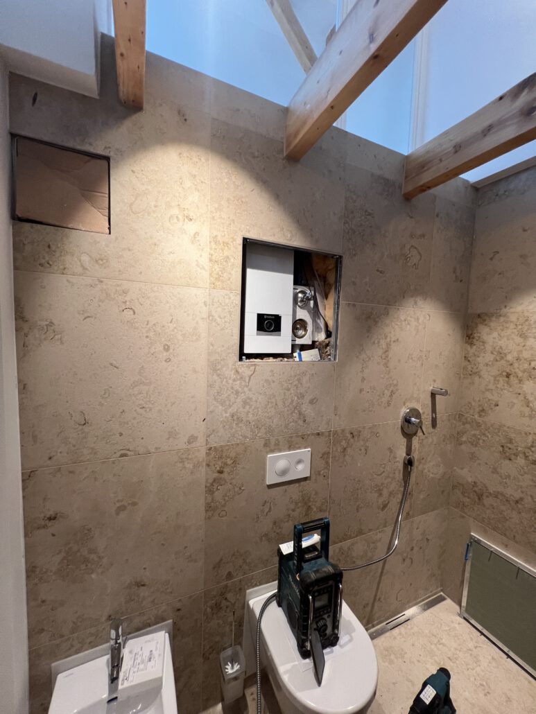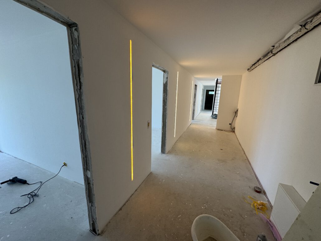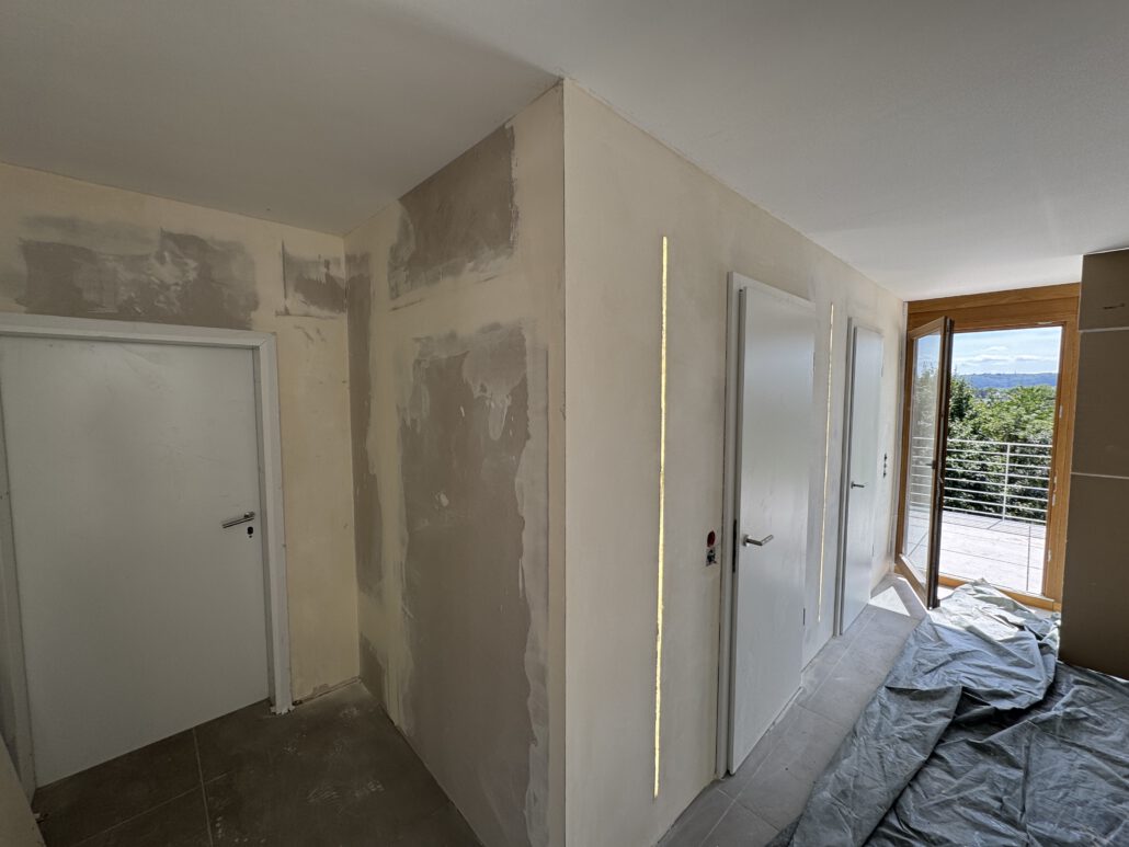 - Im Innenausbau kamen moderne Trockenbau- und Trockenputzsysteme zum Einsatz. Ergänzend wurden hochwertige Fliesenarbeiten sowie Malerarbeiten inklusive Tapezieren mit Vlies präzise ausgeführt.