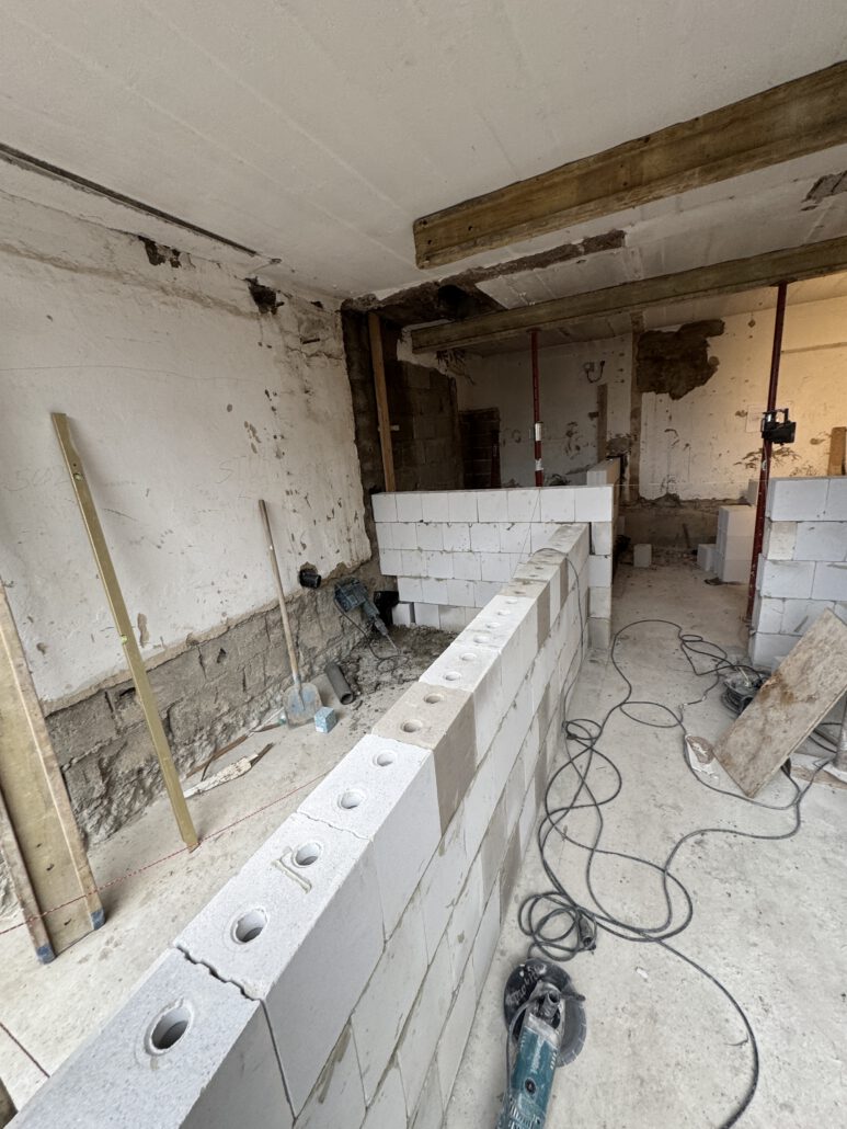 - Rohbau & Struktur – Tragende Wände erneuert und mittels Stahlträgern eine neue Raumstruktur geschaffen. Im Kellergeschoss die Bodenplatte erneuert und Fundamente durch Unterfangung ertüchtigt, um neue Raumhöhen zu ermöglichen.